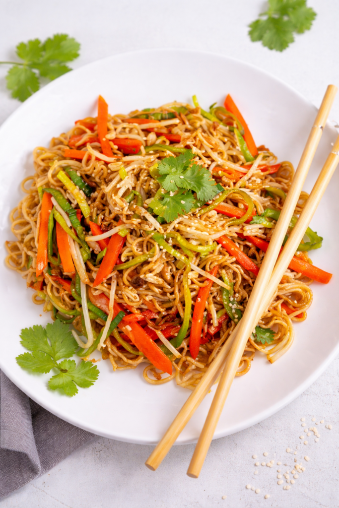Im Kühlschrank bleiben die Asia-Nudeln 3 bis 4 Tage frisch. Fülle sie nach dem Abkühlen in einen verschließbaren Behälter und stelle sie zügig kalt. So hast du mehrere Tage lang eine schnelle, gesunde Mahlzeit parat. Perfekt für Meal Prep am Wochenende!