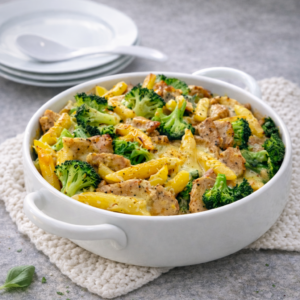 Schnitzelauflauf ist das perfekte Alles-in-einem-Gericht für alle, die Fleisch, Gemüse und Kohlenhydrate in einer Auflaufform haben wollen. Brokkoli, saftige Schnitzelstücke, Schupfnudeln und eine cremige Senf-Schmand-Soße – alles überbacken mit Käse. In 45 Minuten steht dieses herzhafte, sättigende Gericht auf dem Tisch, das die ganze Familie satt macht. Das Beste: Dieser Auflauf lässt sich hervorragend vorbereiten und einfrieren. Einmal gemacht, hast du mehrere Portionen für stressige Wochen parat. Perfekt für Meal Prep, Sonntagsessen oder wenn unerwartet Gäste kommen.